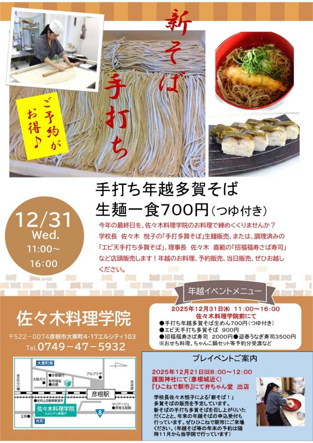 販売用おせち料理&年越手打ち多賀そば等のご案内
