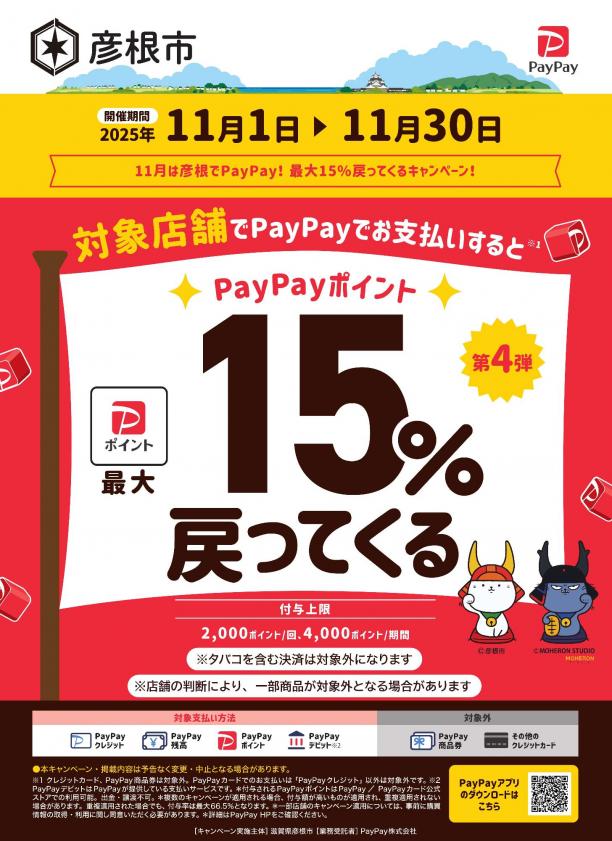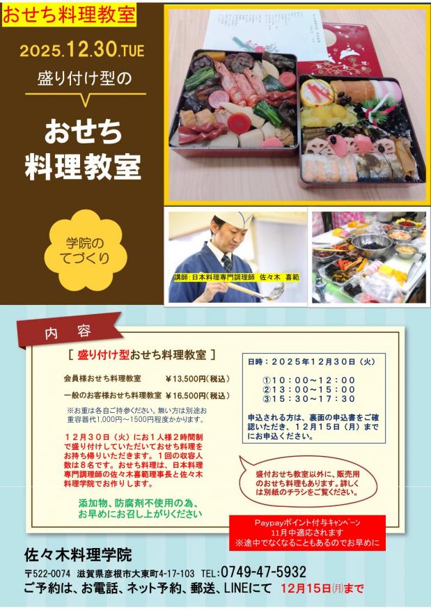 ※彦根市Paypayポイント還元キャンペーン11月1日~11月30日まで15%還元あります。おせち料理等のお申込に利用できます!(Paypayキャンペーンは財源があるため、お早めにお申込ください)